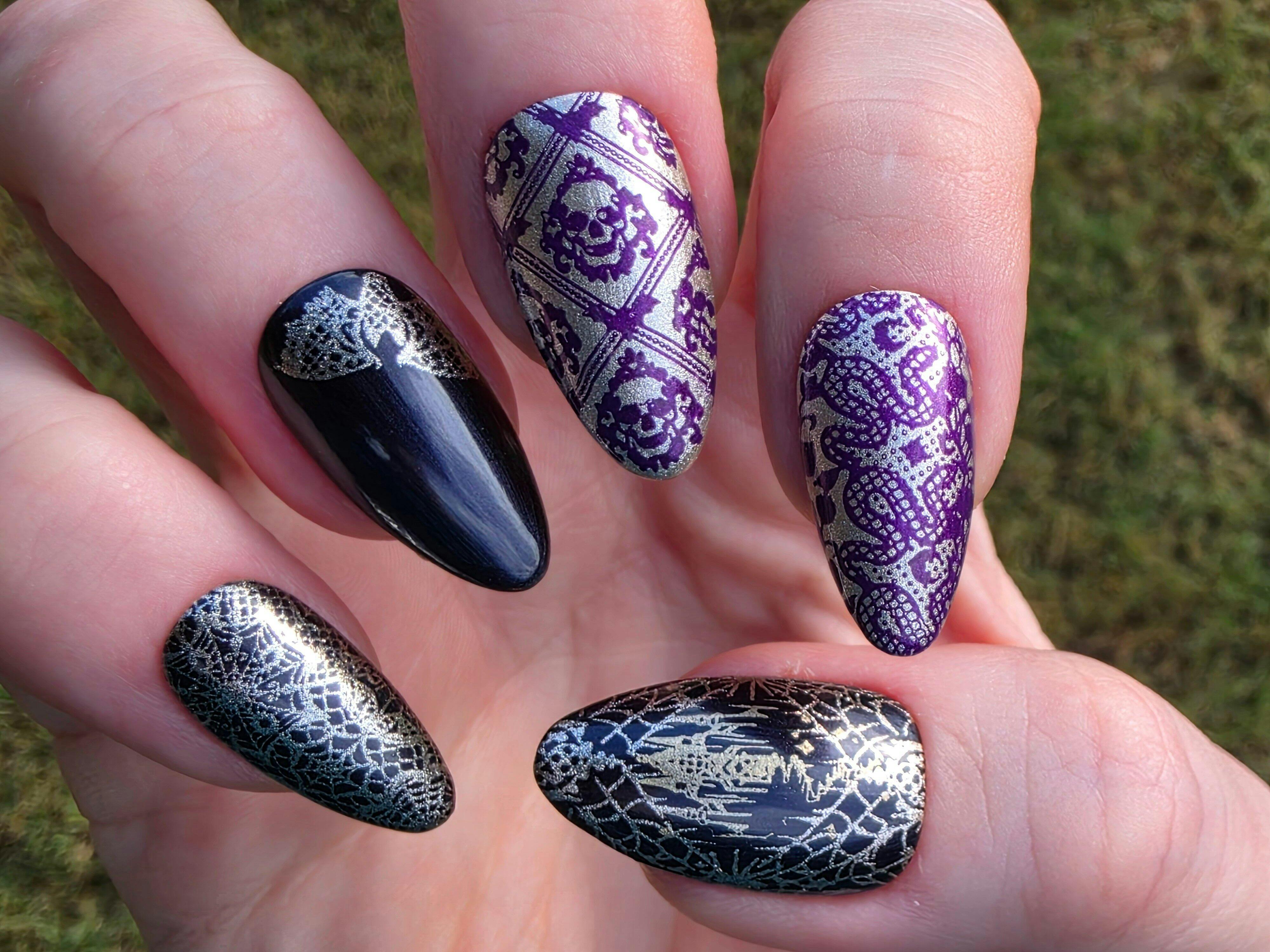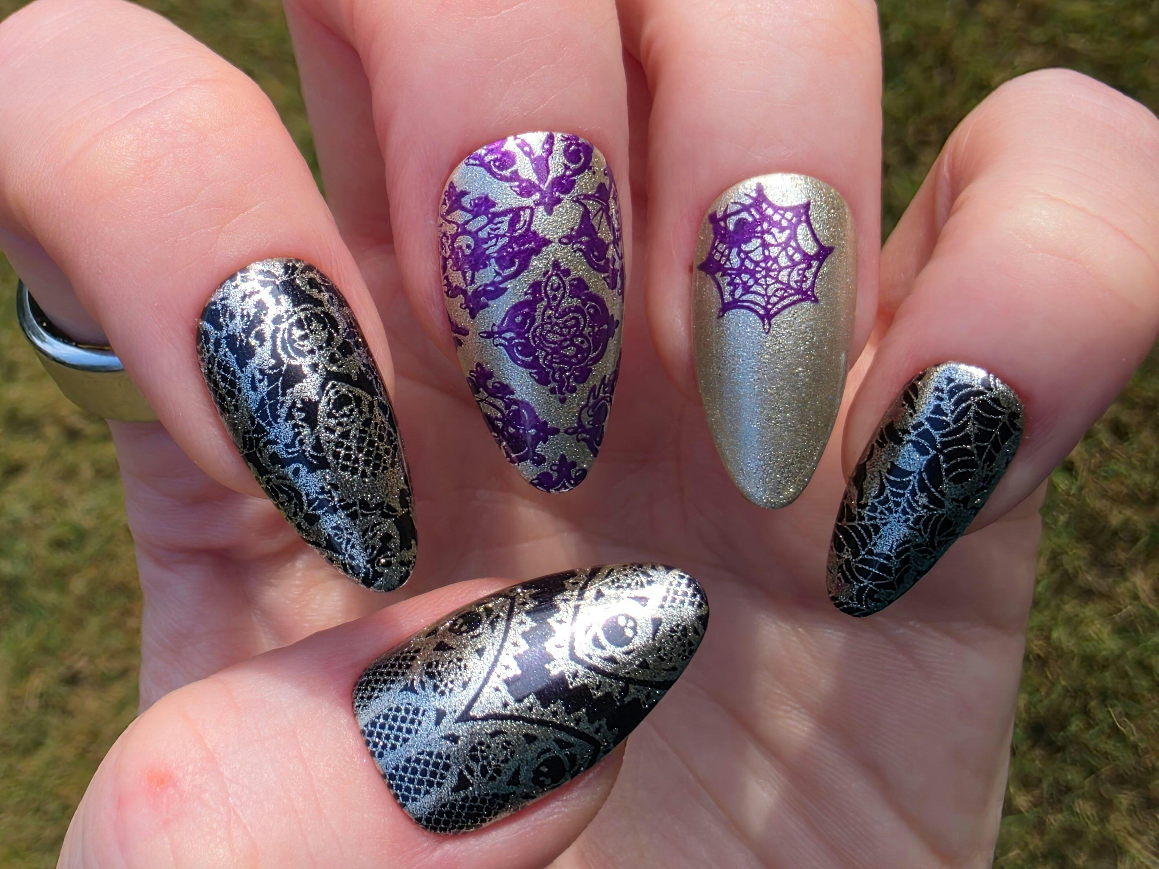 Lace up for a spooky soiree! Our Gothic Gala stamping plate is packed with spooky lace designs, perfect for creating a Halloween nail art that’s both creepy and chic. From spiderweb lace to haunted floral lace patterns and ghostly details, every pattern oozes gothic charm. Whether you're prepping for a Halloween party or just love living on the darker side of glam, these designs will transform your nails into fearsome fashion statements.