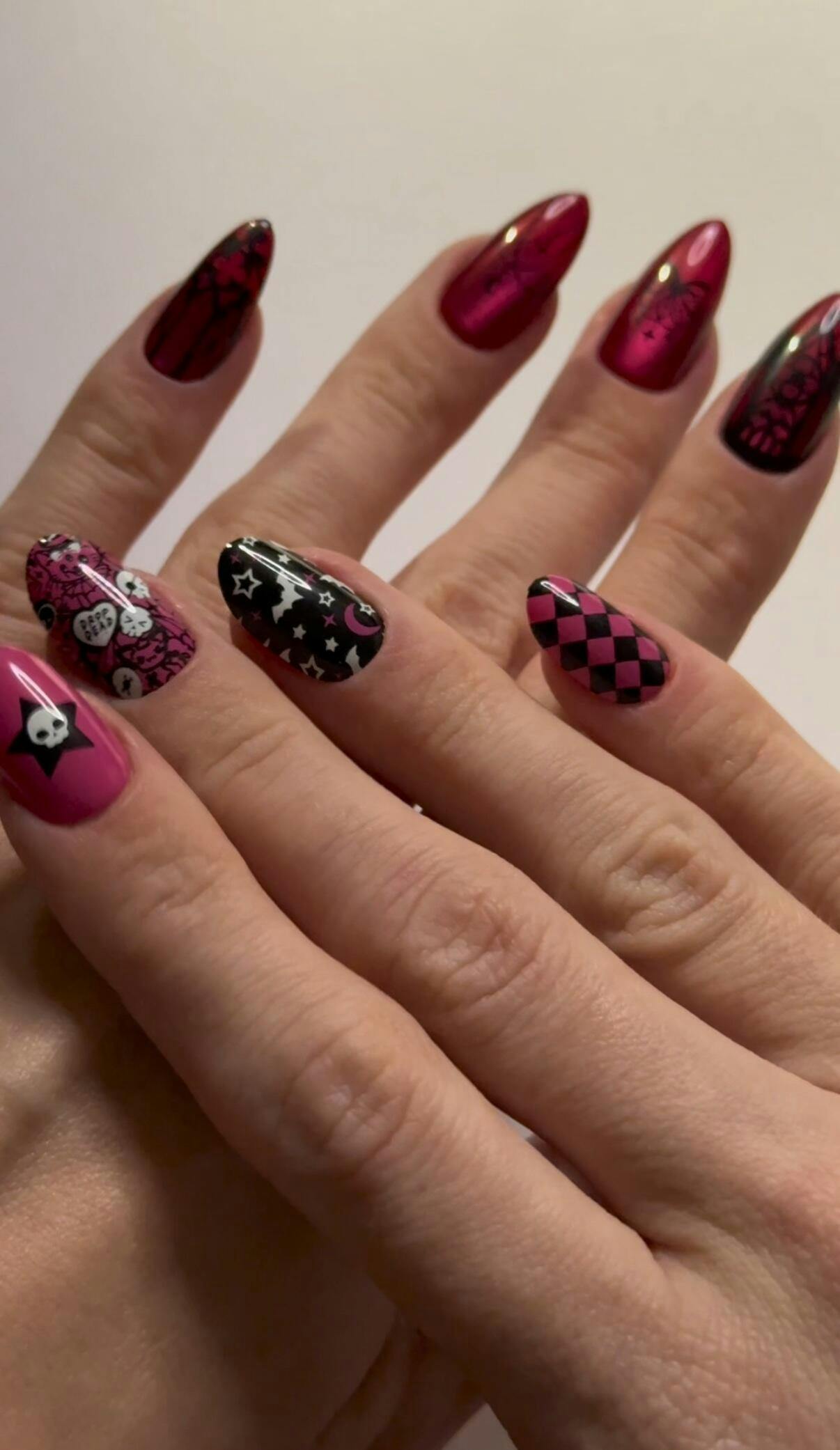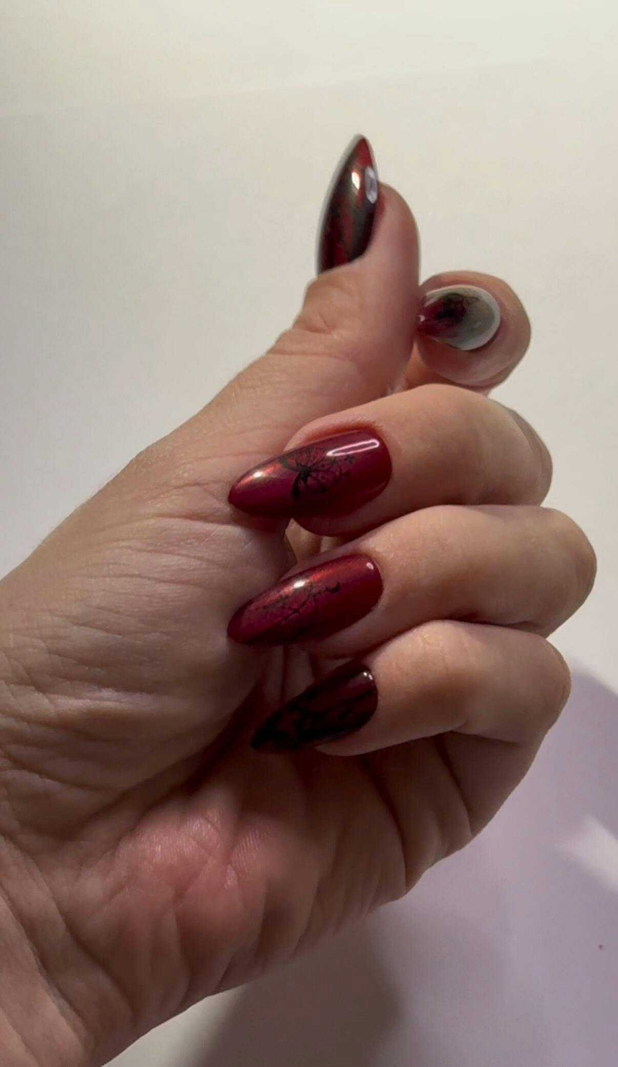 Our Gothic Glamour Press On Nails are dripping in dark elegance! Exclusively designed by Maniology, these medium almond tips in sultry red shades with black lace detailing offer a chic, dramatic look that’s irresistibly captivating. Perfect for a glam night out or anytime you’re feeling bold.