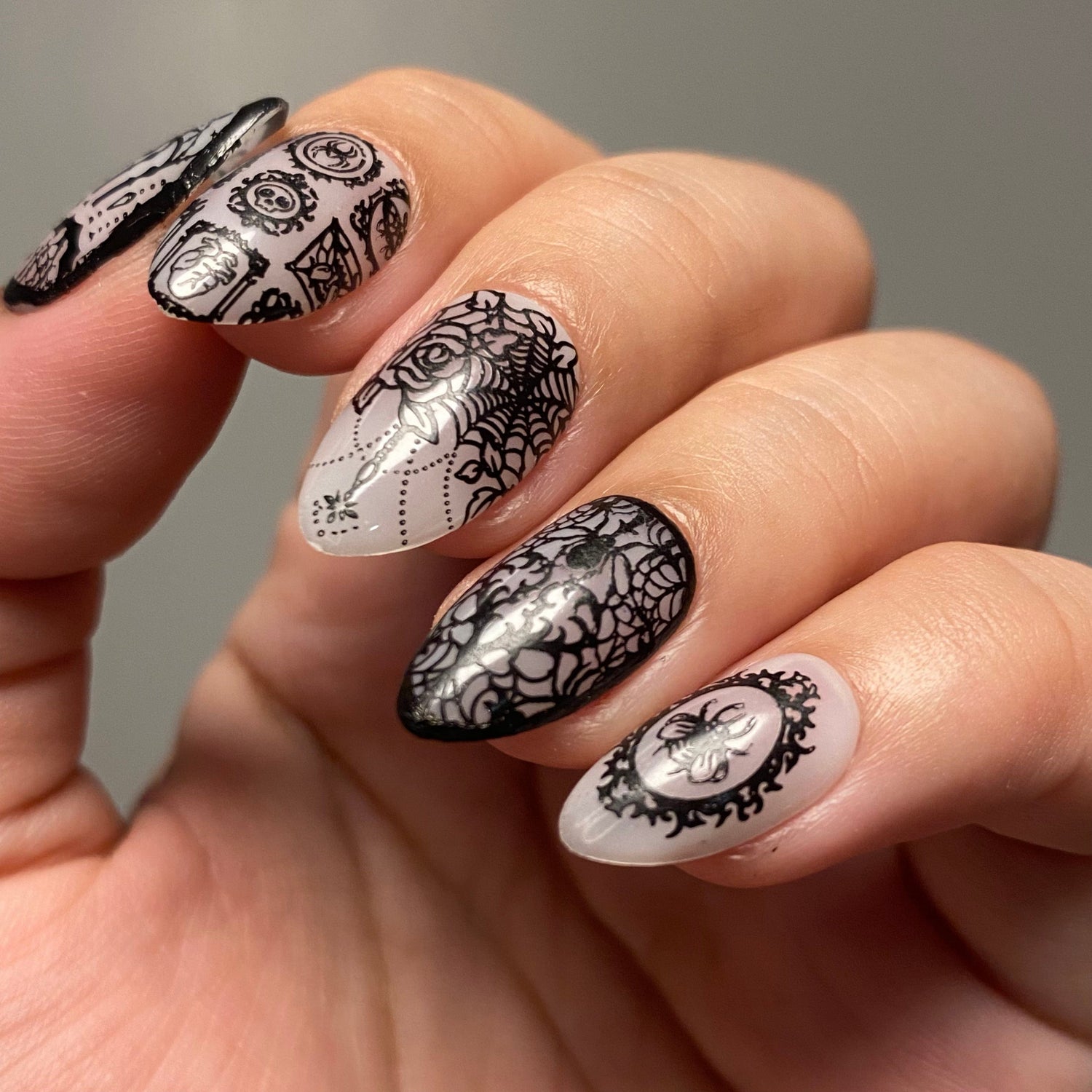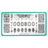Our Gothic Grandeur will be your guide through a labyrinth of spooky elegance. Wander through the shadows with this gothic Halloween stamping plate that brings the eerie charm of a haunted mansion right to your fingertips. Uncover designs featuring creepy portraits, thorny vines, eerie candelabras, and ghostly chandeliers. Discover ominous skulls and haunted mirrors that reflect your darkest nail fantasies. Perfect for those who appreciate the darker side of nail art, this gothic stamping plate lets you create the ultimate spooky nails.