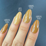 • THANKFUL ESSENCE: Express your gratitude through stunning nail art creations with this creamy camel brown polish.