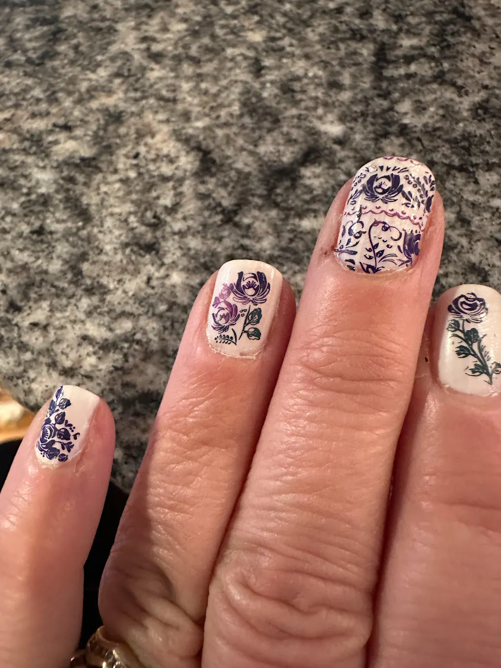 A timeless porcelain classic, made for your nails. Inspired by traditional Russian porcelains, Gzhel Roses features ornate roses and decorative folk-style patterns, giving your nails that beautifully detailed, porcelain look. Each design carries the delicate brushwork and intricate details seen in hand-painted porcelain pieces, for lovely floral nails you’ll love to wear every day!