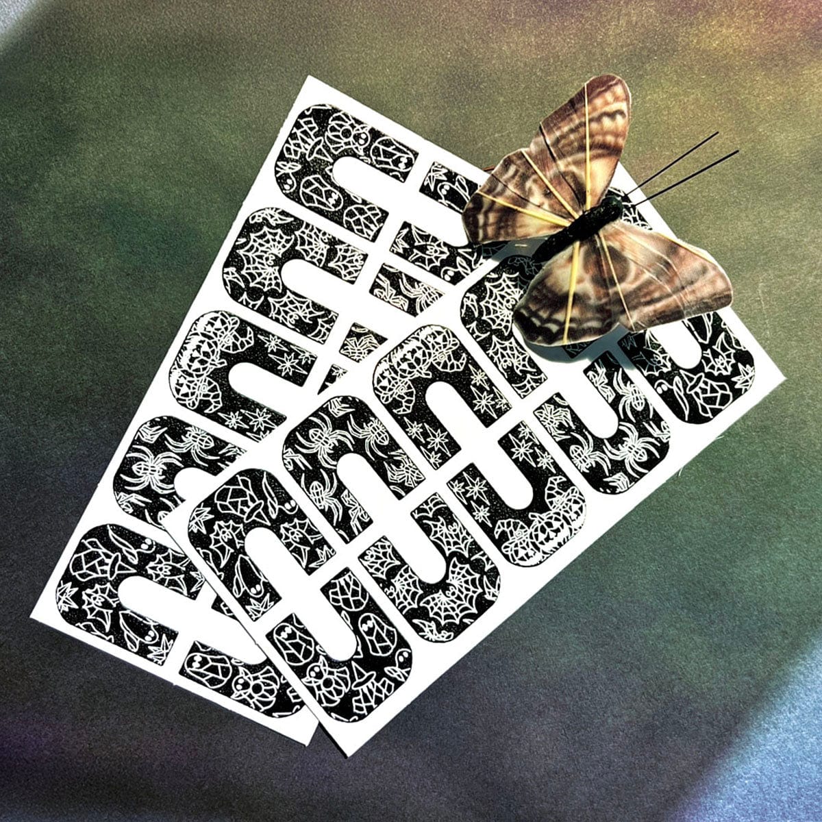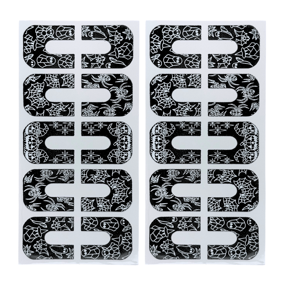 Keep the mess outside the panes! Our Haunted Reflections Cuticle Protector Tape keeps polish off your skin while framing your nails in stained glass-style flair. This set of 20 latex-free U-shaped adhesives snuggle up to fit the curve of your nail and features a spooky stained glass design. To use, adhere the tape to the area surrounding your nail, stretching as you stick for a nice snug fit. Paint and stamp as usual, then gently peel from your fingers to reveal clean, polish-free skin. Great for stamping, water marbling, and sponging techniques. Easy to use, easy to remove, and perfect for spooky nail looks!