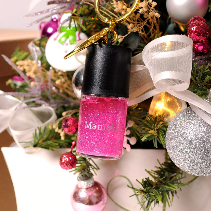 Shake up your style with nail accessory for the road. We're unlocking your creativity with a Maniology glitter shaker keychain, a delightful addition to your daily essentials, bringing a burst of holiday joy for your everyday carry. This charming accessory features the signature Maniology stamping polish bottle shape, swirling with a flurry of sparkles. Clip on the creativity and make your moments merrier.