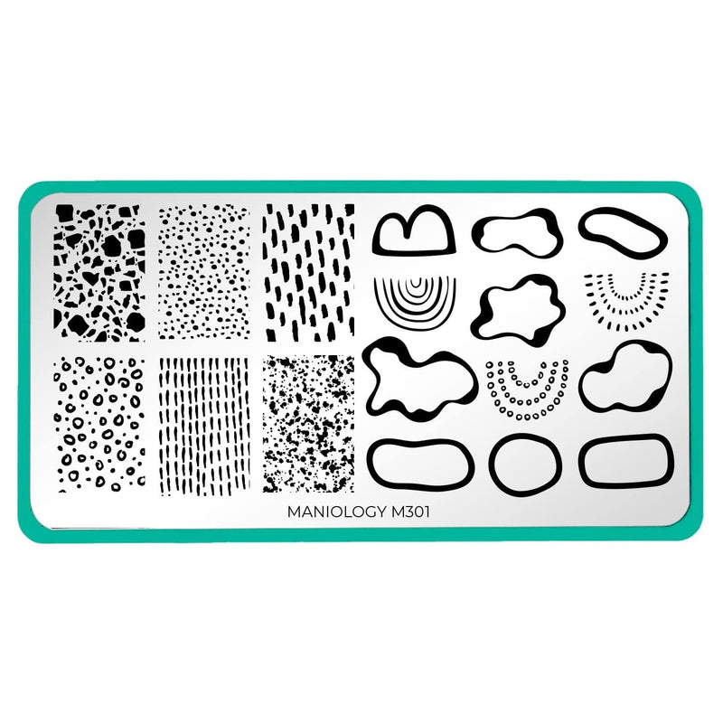 Our In Shape stamping plate is filled with 6 full nail patterns and playful accent designs. This plate offers variety of dots, dashes, and funky abstract outlines to add texture to your nails and keep you in shape! Stamp your art out using these elements to create beautiful abstract nails.