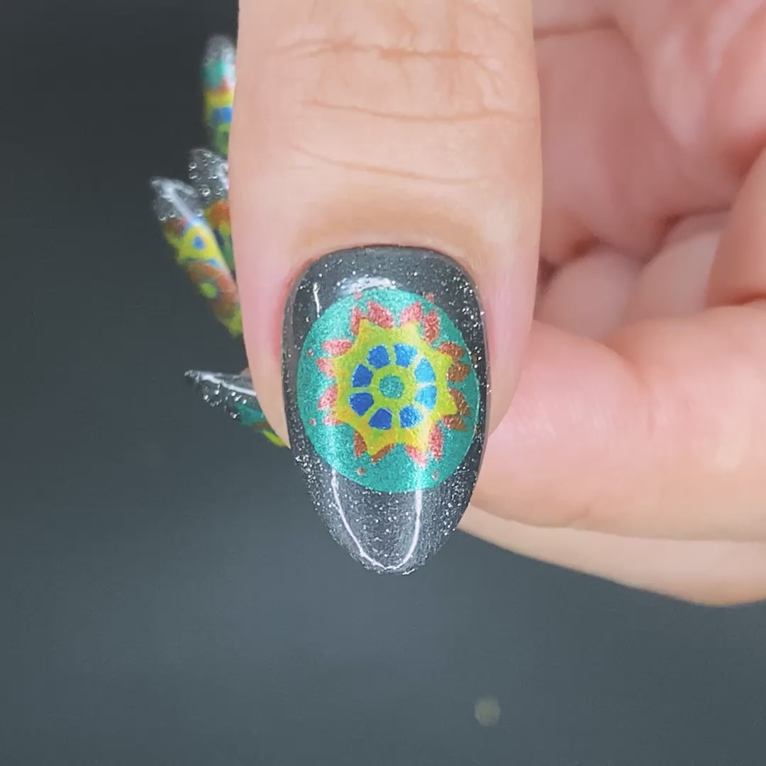 Step inside the kaleido-zone! Our Kaleidoscope stamping plate will take your fingertips on a psychedelic journey with twists, turns, and endless nail art possibilities. Featuring buffet-style designs and layerable nail accents, this retro 70's inspired plate lets you play with shapes and hues like never before. Make your mani pop with intricate floral patterns and geometric mandala nail art designs that layer seamlessly to create your unique kaleidoscopic look.