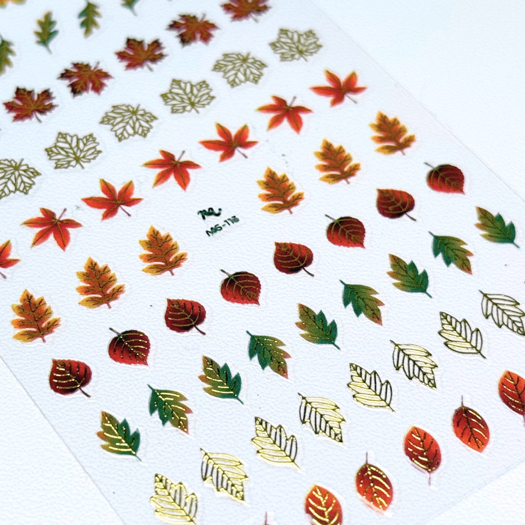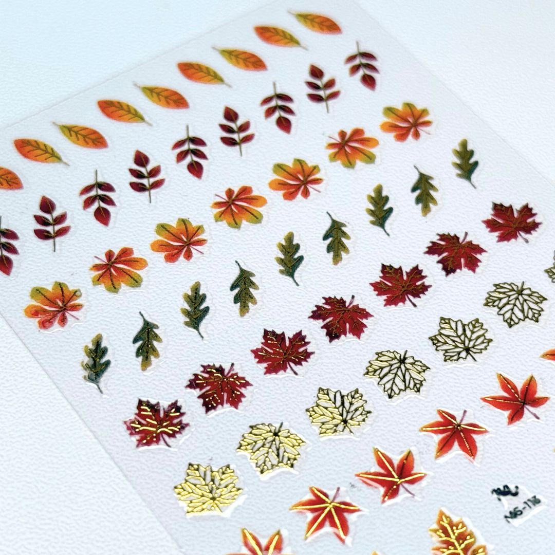 Our Leafy Outlines Nail Art Sticker Set brings the warm glow of autumn with beautifully detailed leaf shapes in vibrant seasonal shades. From rustic orange to golden yellow, these these designs dress your nails in fall foliage. Each design is printed with high quality ink and pliable materials to hug the natural curve of your nails. The ultra thin backing creates seamless designs on the nail bed, so you won't have to worry about raised edges. Stick on a little fall magic, your nails deserve to match the season’s glow!