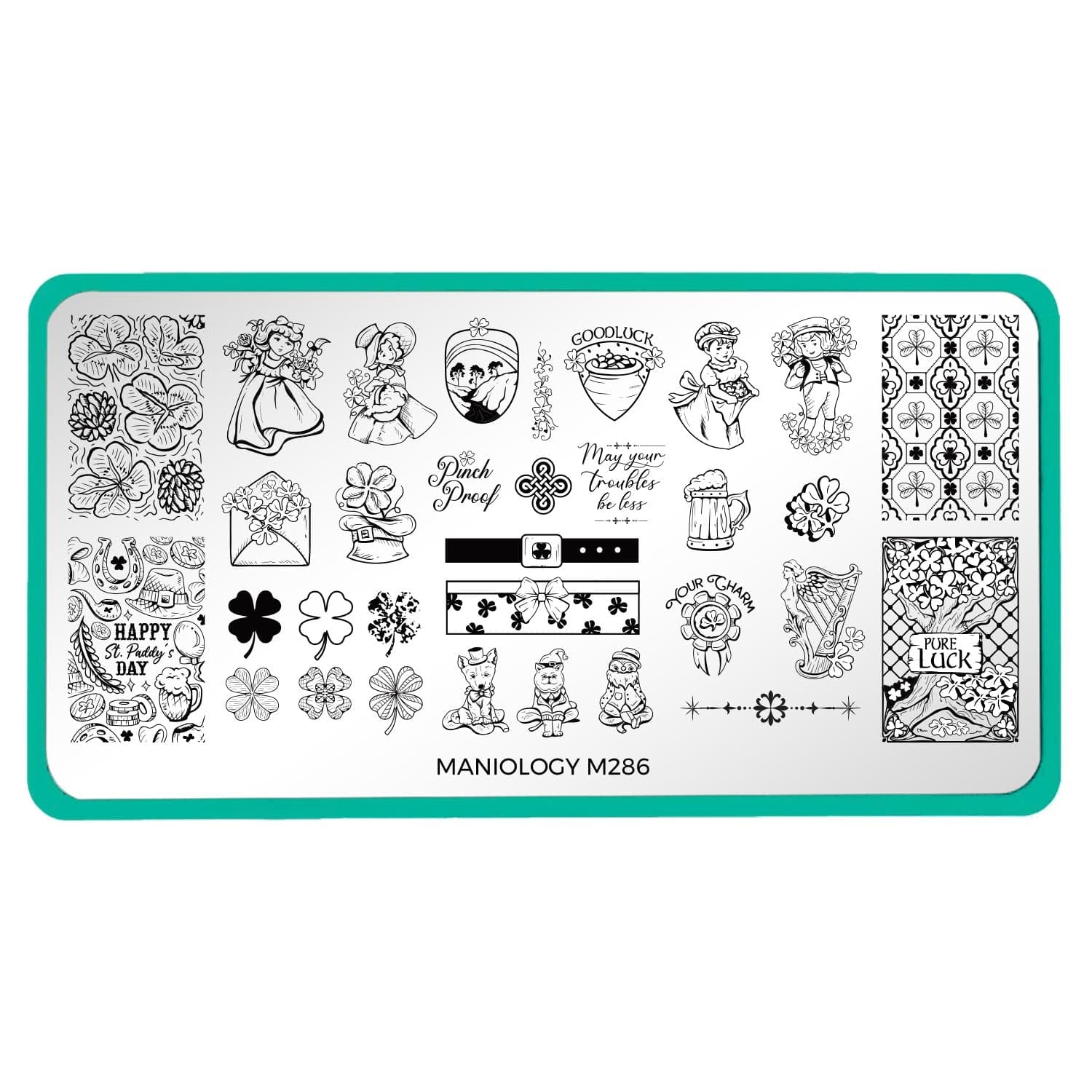 It's your lucky day! Our Leprechaun Gold stamping plate includes all the charms you need to celebrate St. Patrick's Day. Going green has never been easier. Layer on the details with a layering 4 leaf clover design or fill your entire nail with our full nail designs. This festive stamping plate features full nail, accent, and buffet style designs for tons of St. Paddy's Day fun.