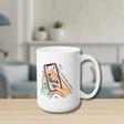 The mug is made up of ceramic; 15oz in size; rounded corners; with a C-handle. *This item is made to order and fulfilled by our printing partner. Ship within USA only.