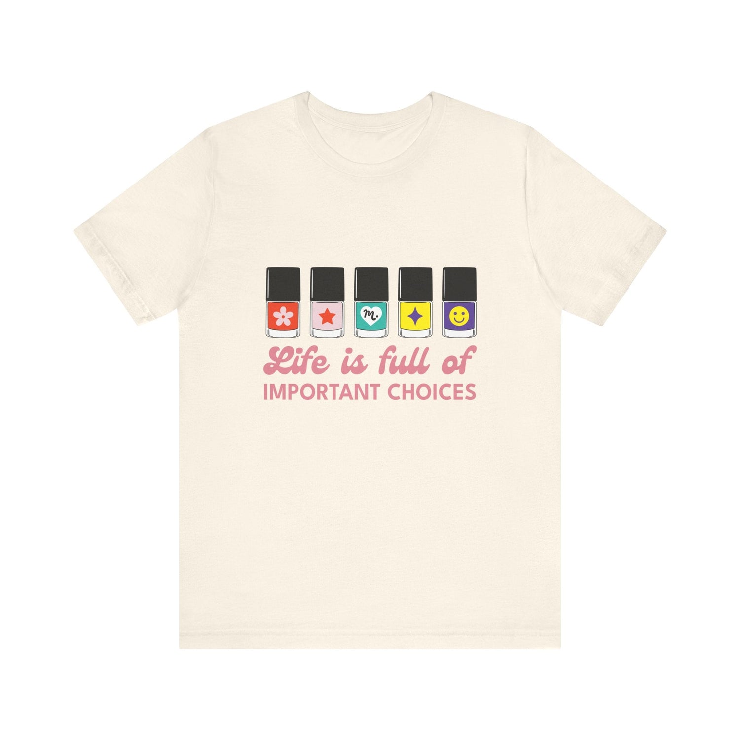 Life is full of Important Choices - Short Sleeve T-shirt - Natural / S is backordered and will ship as soon as it is back in stock.