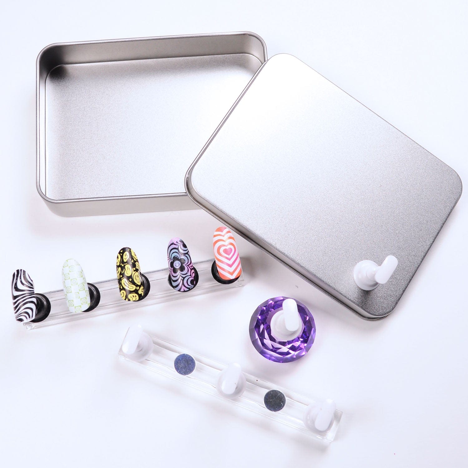 Magnetic Nail Tip Stand Holder and Storage Container - Silver Tin
