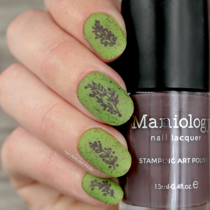- ROOM FOR CREAM: This deep brown stamping polish features violet undertones.