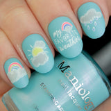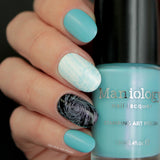 Enjoy the cozy rainy days with Droplet (B426), a baby blue stamping polish with a delicate pearly iridescence, perfect for painting the raindrops. originally featured in our Storm Chaser Mani x Me Box. This light and tranquil pastel polish features a beautiful pearl finish, perfect for stamping.