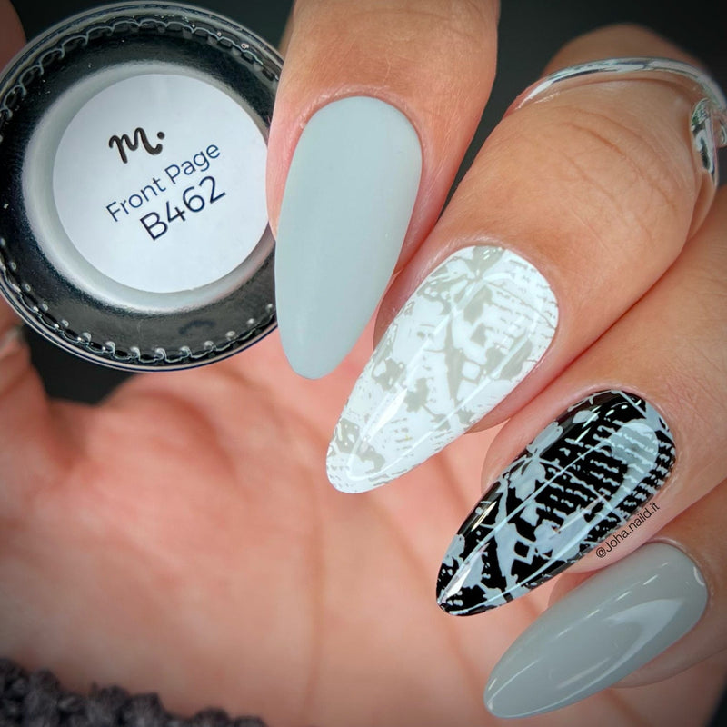 Make your nails a masterpiece! Front Page (B462) is a light cloud gray in our classic cream finish. Originally featured in our Maximalist Mani x Me box, this highly pigmented polish gives a smooth and elegant finish with a touch of creativity, great for showcasing your art on your nails. Stamp over your favorite base color or paint over the entire nail for flawless full coverage.