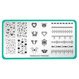 Hardcore hearts & spiked romance! Cupid’s got a new weapon—and it’s forged in chrome. Links of Love shakes up Valentine’s Day with a punk edge. Featuring heavy metal aesthetic like interlocking chains, edge-to-edge spikes, tribal heart tattoos, and fierce trims, this plate ditches the clichés and doubles down on fierceness. Dangerously cute with a heavy metal sou, this plate gives your nails armor and attitude!