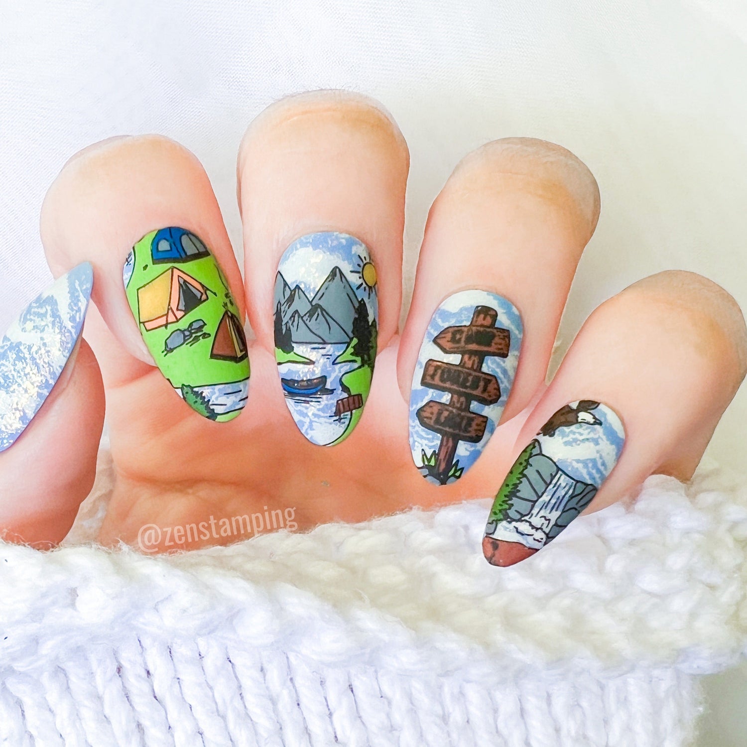 • TRAIL TIPS: Follow the path to perfect adventure-themed nails. with scenic stamping designs.
