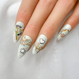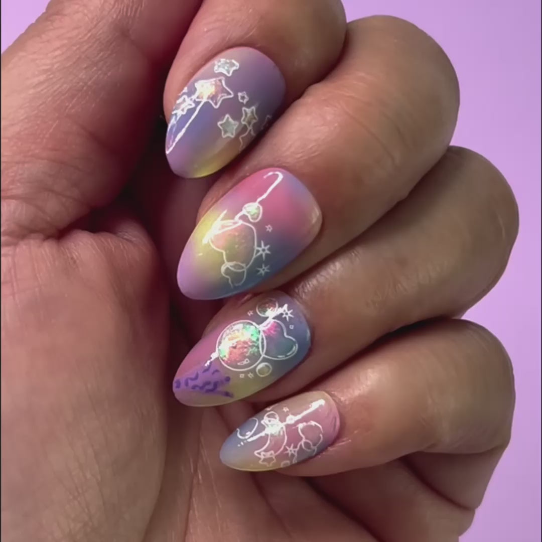 Because popping bubbles is a vibe—and now a mani. Let your inner child play with the Bubble of Fun stamping plate, bursting with whimsy and joy. Stamp with adorable bubble designs in all shapes and sizes, and cute phrases like “Feelin' Bubbly” and “Bring On The Bubbly”, plus charming accents like balloons, stars, and clouds. Perfect for anyone who wants mani that feels like floating through a daydream.