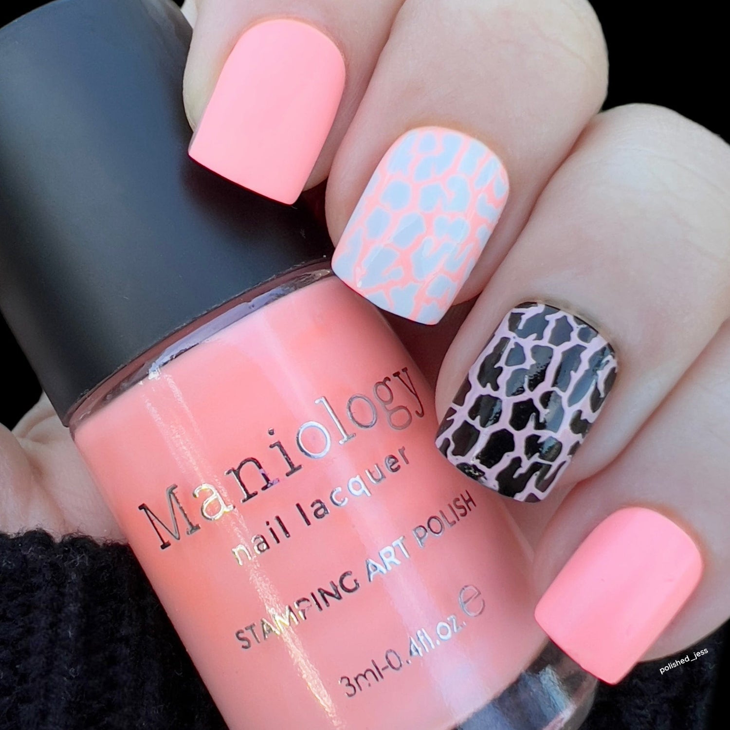 Dance all your worries away with Flashdance (B284), a creamy pastel pink tinged with orange for a perfectly balanced pop of funk. Stamp over your favorite base color or paint onto the entire nail for flawless full coverage.