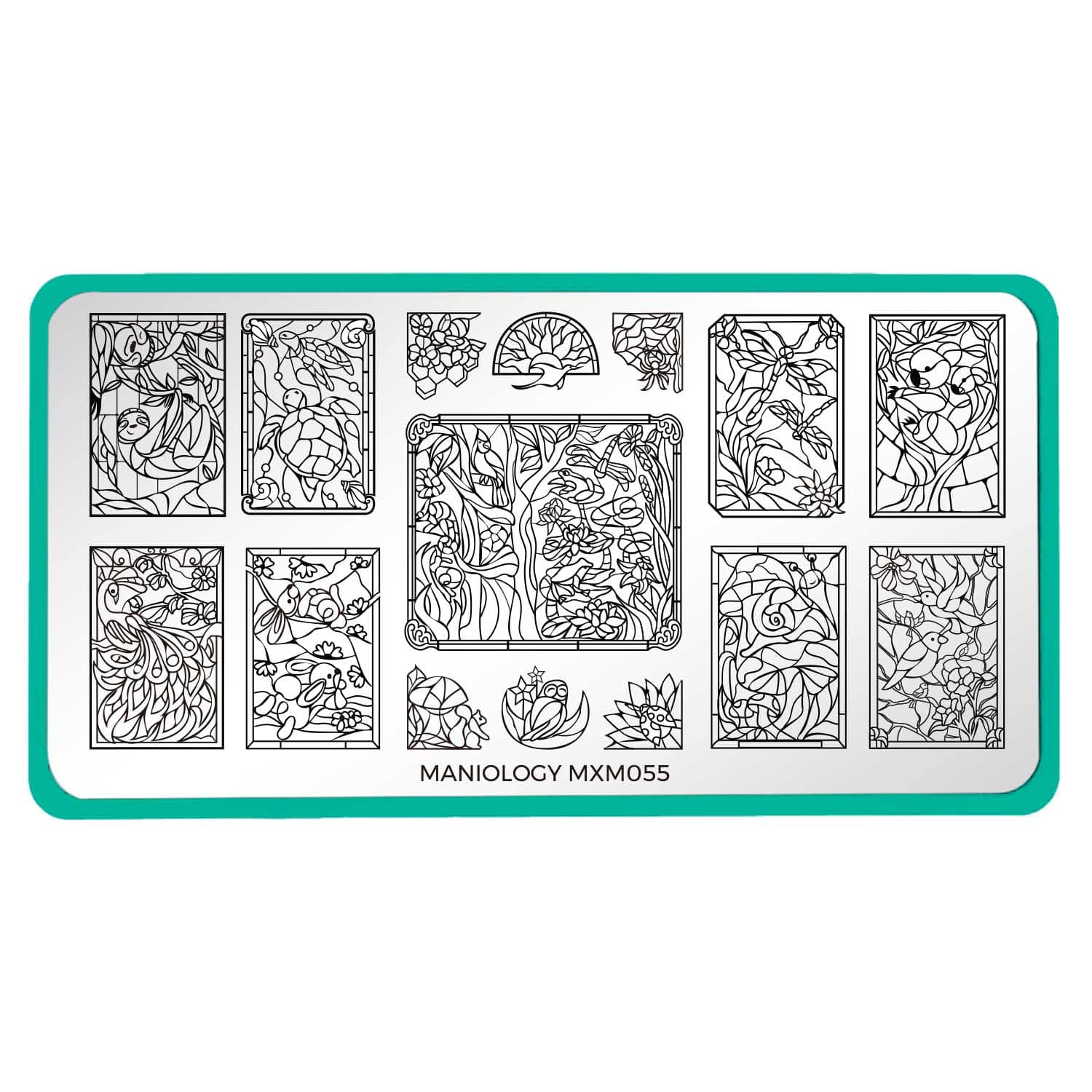 Windowed Wilderness stamping plate is a woodland dream, inspired by the elegance of stained glass and the charm of woodland wildlife. Explore mosaic masterpieces shaped like turtles, birds, owl, squirrels, and more — each nestled in beautiful stained glass-style frames. These designs are perfect for reverse stamping, creating nails that look like little windows into the wild.