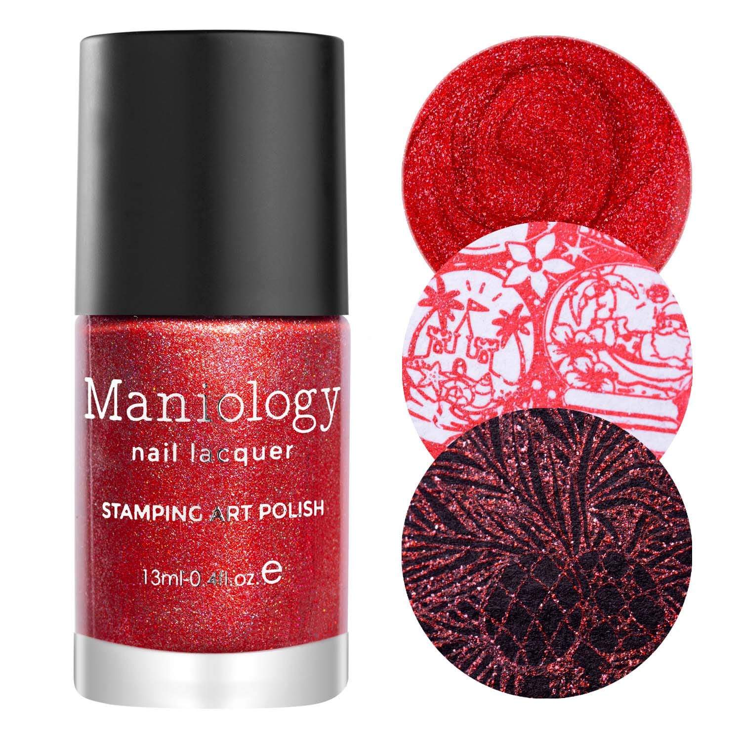 Greet the world with a sparkle! Shaka Santa (B411) is a bright and cheery red stamping polish with plenty of pigments and large metallic sand glitters. Originally featured in our Tropical Christmas Mani x Me box, this highly pigmented polish is great for stamping or all-over coverage any time of the year.