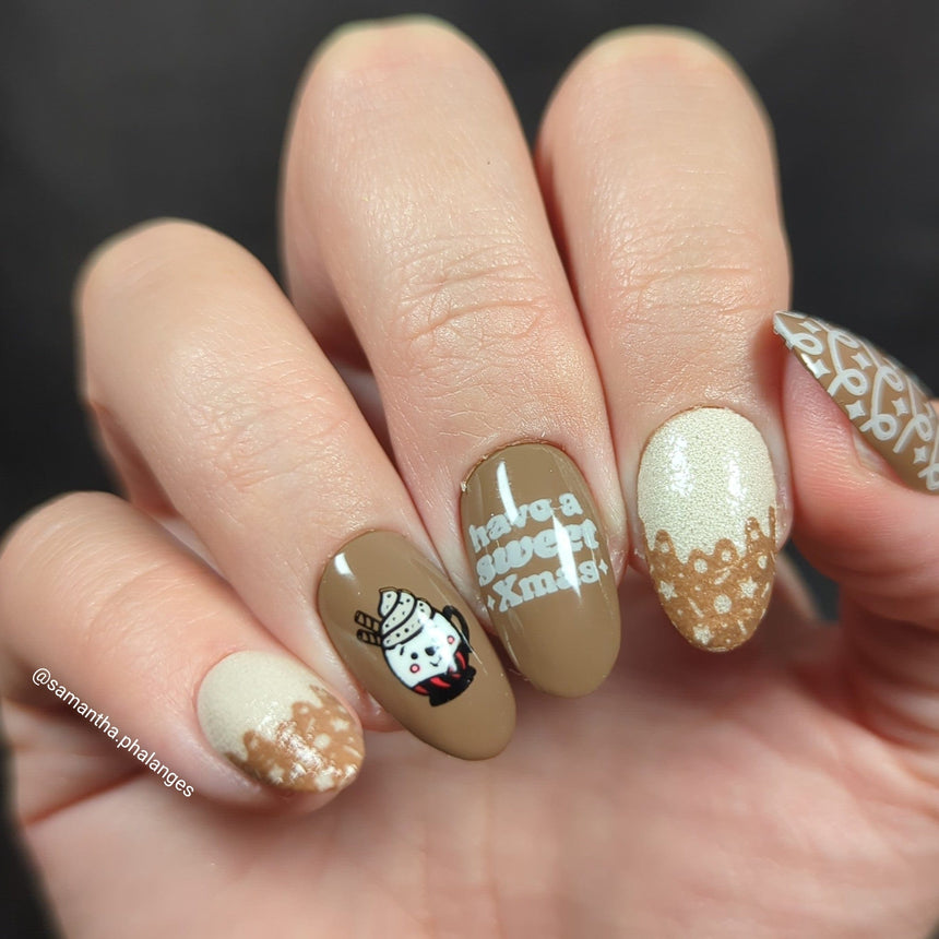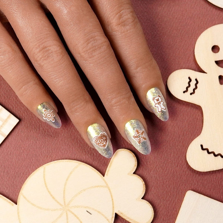 These designs are so sweet, Santa might mistake your nails for cookies! Icing On Top arms the heart with tasty holiday treats. Sprinkle your nails with candy canes, gingerbread men, swirls of sweet icing. It’s a plate that feels like a frosted sugar rush, with all the cozy whimsy of decorating cookies by the fire. For when you wan your holiday nails topped with sugary charm, Icing On Top is your perfect finishing touch!