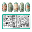 Like flipping through an old journal—but for your nails. Pressed & Preserved is an autumn scrapbook-style stamping plate bursting with beautifully detailed elements that feel handpicked and heartfelt. You’ll find layered designs of pressed leaves and flowers, handwritten letters, postcards, warm drinks, pumpkin pie, acorns, autumn fruit, vintage tags, cozy cups, and seasonal fall phrases. For mani lovers who collect fall memories, relive your favorite moments and stamp your story before the last leaf falls!