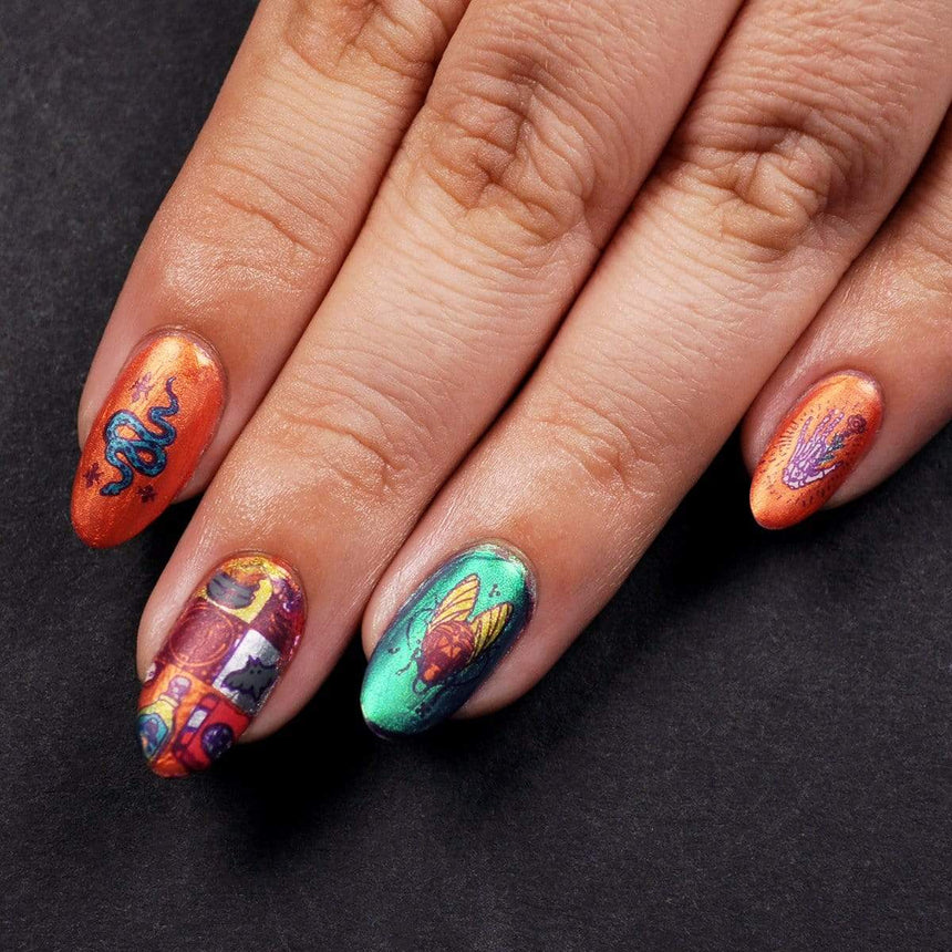 One prick and you're cursed… with great nails. If you’ve ever wanted to combine voodoo vibes, stitched horror, and arcane design, Pins & Hexes is your plate. This Halloween stamping essential includes creepy designs straight from a haunted ritual circle: needle-pierced brain, broken skulls, bleeding bones, unblinking eyeballs, pulsing heart, rattling skeleton hands, snake charms, burning candles, and cursed voodoo doll. It’s the kind of scene you’d back away from in a horror movie. Wicked, weird, and perfect for Halloween.