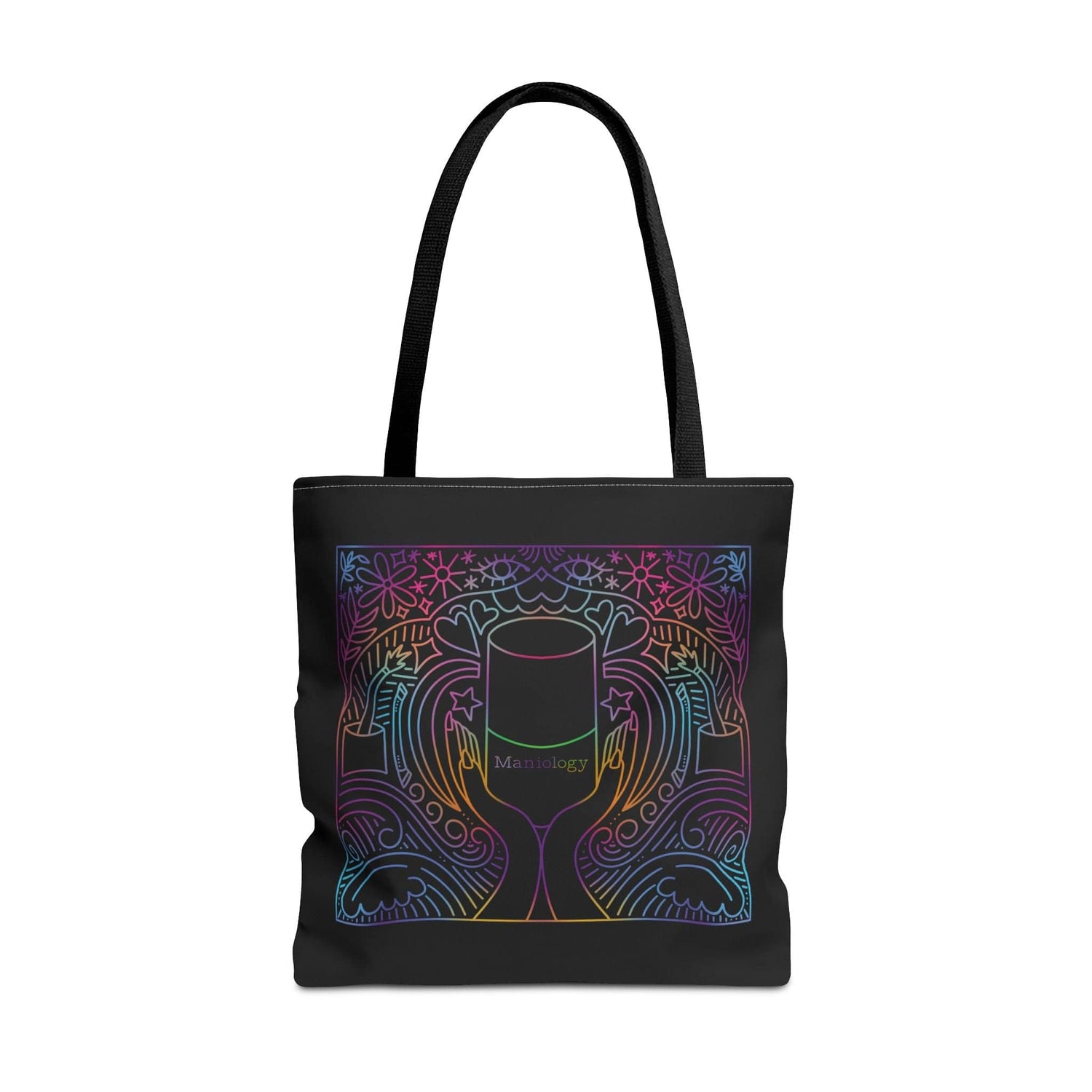 Maniology Rainbow Black Tote Bag - 13" × 13'' is backordered and will ship as soon as it is back in stock.