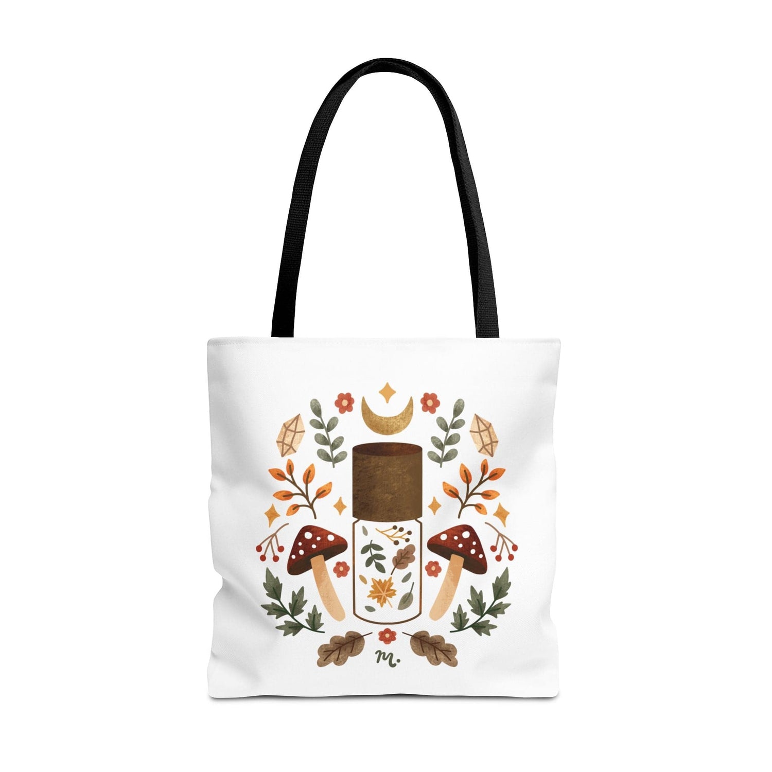 For the dreamers, the mystics, and the lovers of fall, our Mystic Garden tote bag is perfect for your daily adventures. Featuring a whimsical blend of mushrooms, leaves, and mystical elements, this mystic garden bag flaunts an enchanting autumn style. With its spacious boxed compartment and durable polyester materials, you'll have plenty of room to carry everything you need - and look great doing it. Choose from 3 different sizes.