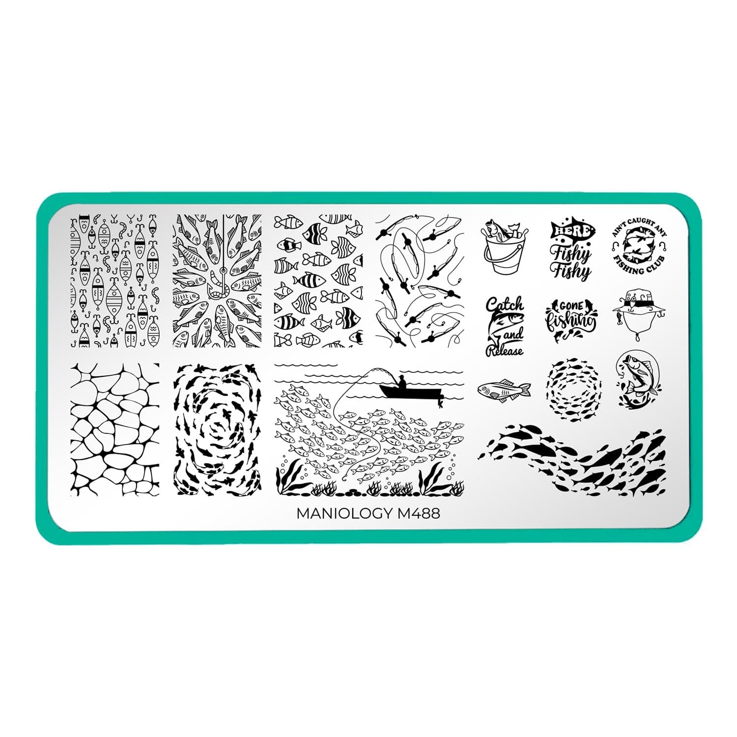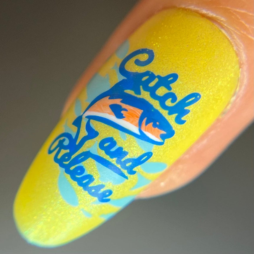Reel in the fun with Off the Hook fishing nail designs! Explore a sea of adorable fish, shoals, and catchy fishing phrases that will hook you in! Whether you're angling for aquatic full nail patterns or adding fishing-inspired accent details, this plate offers everything you need to create fishing nail art that's off the scale.
