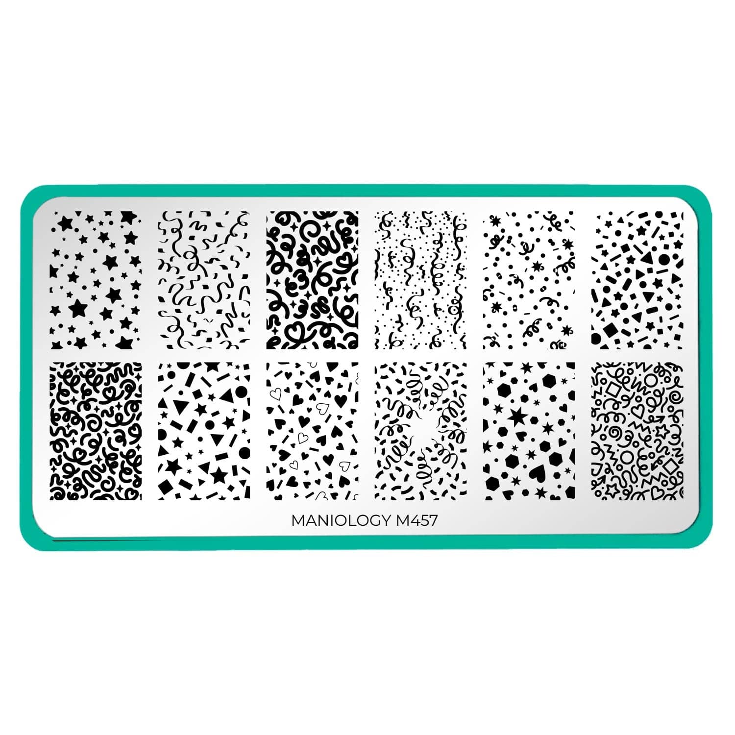 Life's a party! It's time to pop, stamp, and nail the fun with our Party Time stamping plate. Featuring 12 lively patterns inspired by party confetti, this plate showers your nails with fun and playful designs that radiate the excitement of a lively celebration. From confetti explosions to dynamic shapes, your nails will dazzle with every stamp.
