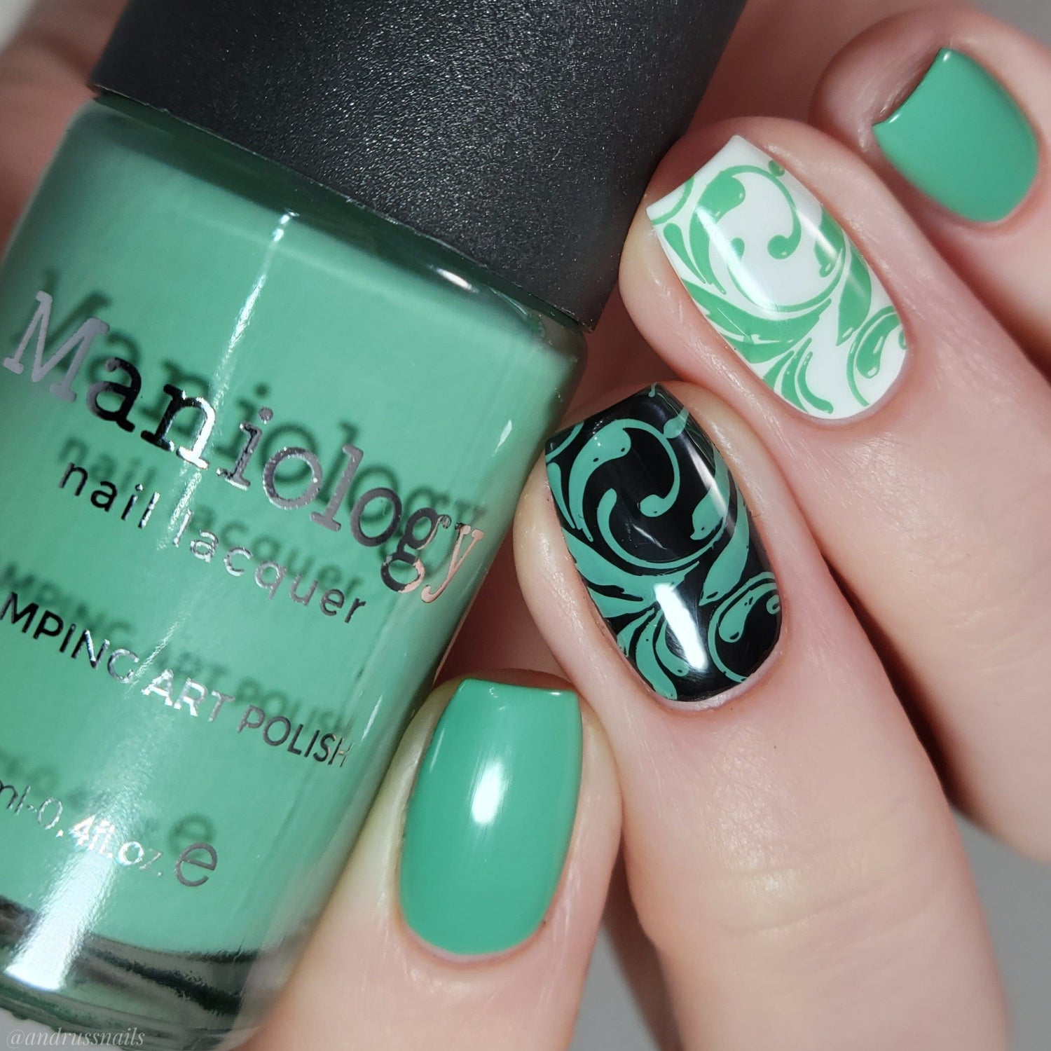 Rustle (B418) is a light teal stamping polish with a cream finish. This highly pigmented polish is great for stamping or all-over coverage.