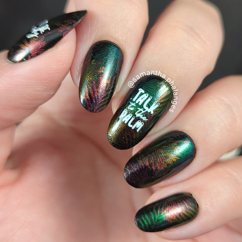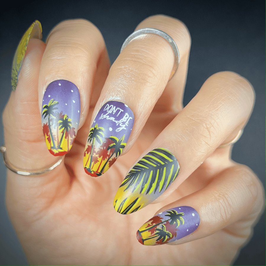 Keep calm, and Shake Your Palm Fronds (M387)! This tropical stamping plate is the key to nailing those beachy vibes! These palm tree patterns will have your nails packed and ready for a vacation! With an array of full nail and accent style designs, you can create manicures that are cool, breezy, and undeniably chic. It's time to get your nails grooving to the rhythm of the tropics!
