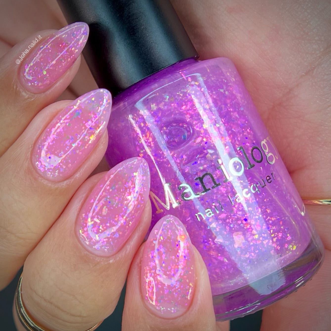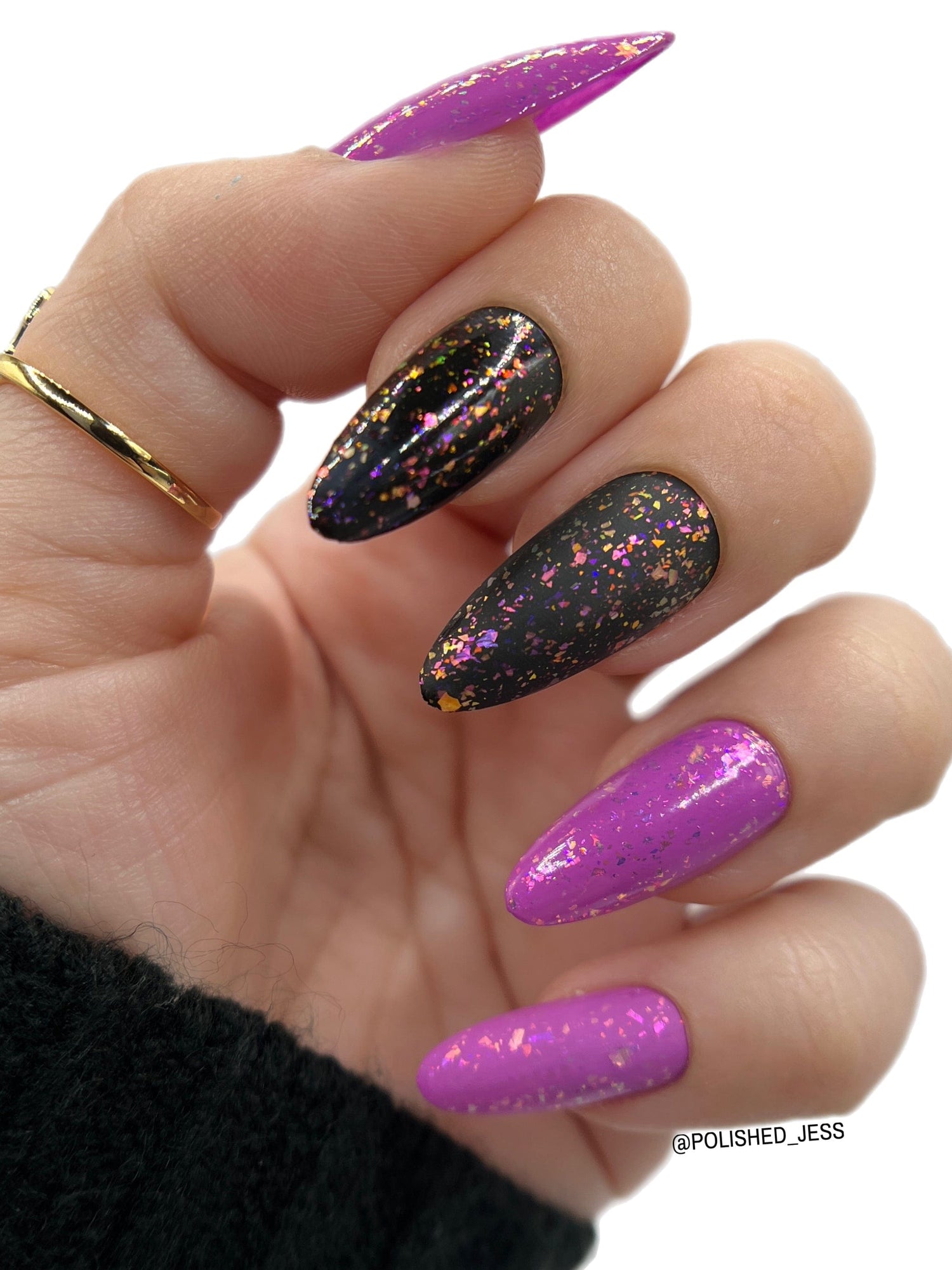 • MELODIC MANI: Add a touch of avian allure to your nails with this purple jelly flakies polish.