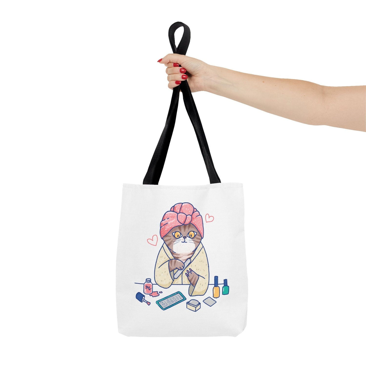 Transform your daily grind into a catwalk with our Spa Kitty tote bag. With a cute pampered cat design, confidently nail the look with a hint of whiskered charm! This bag will help you stay stylish and organized, showcasing your impeccable style and love for cats. With its spacious boxed compartment and durable polyester materials, you'll have plenty of room to carry everything you need - and look great doing it. Choose from 3 different sizes.