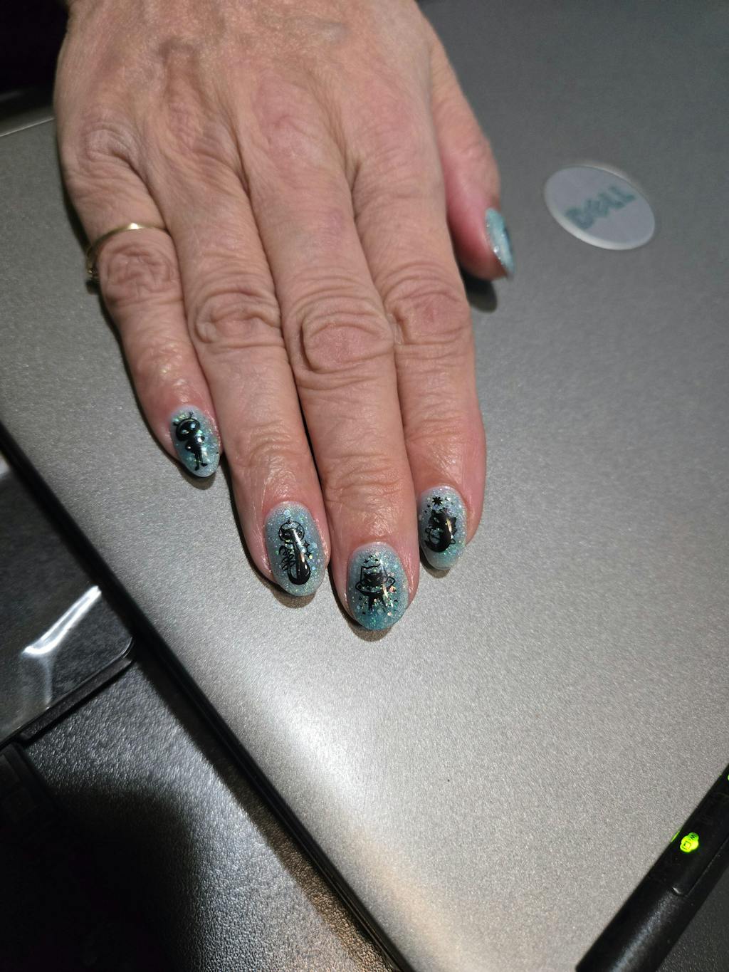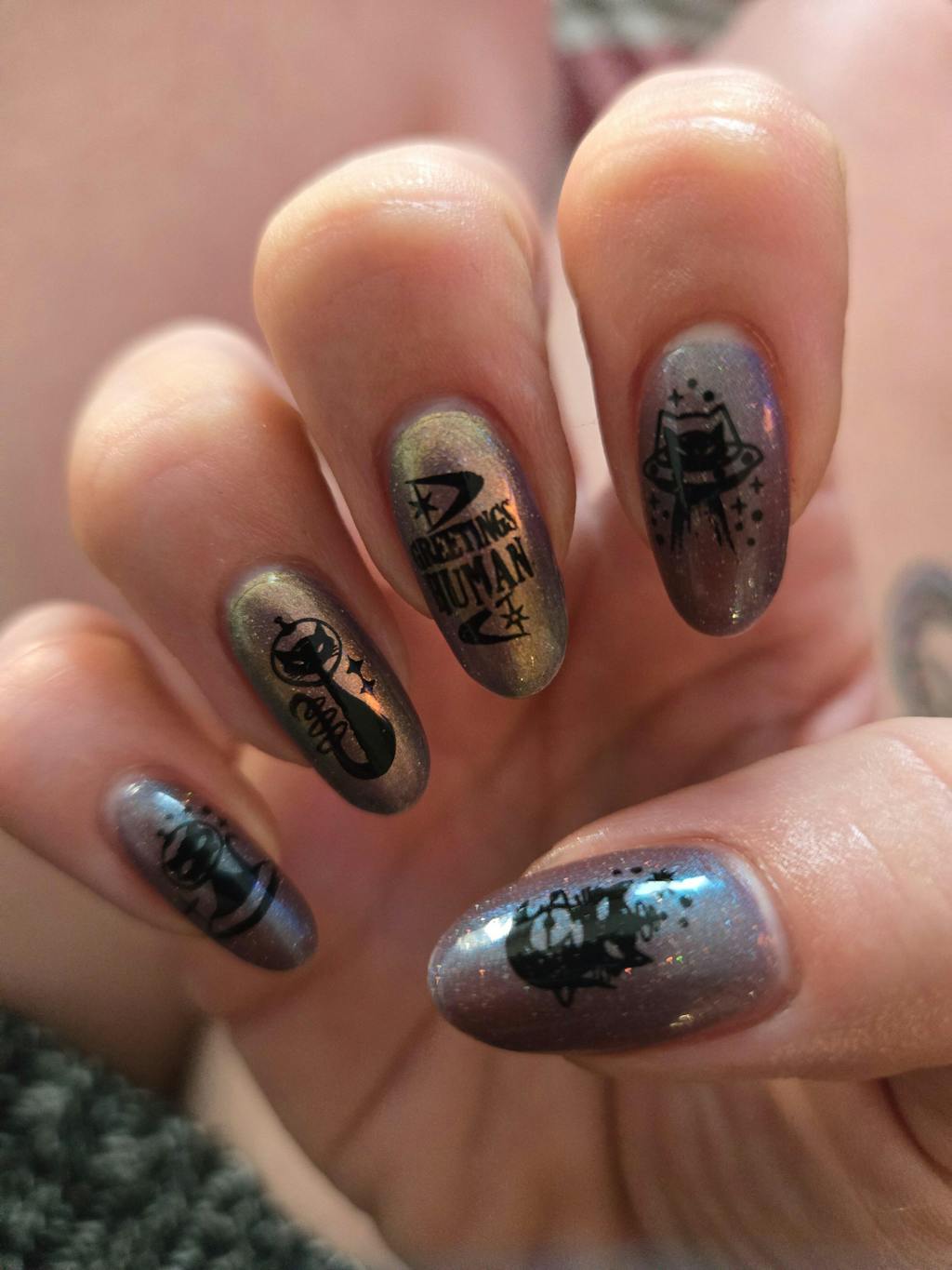 • RETRO ORBIT: Mix hand-drawn space art, quirky phrases, and retro sci-fi elements for fun and creative cosmic nails.