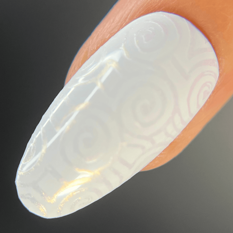Sandbar (B475) stamping polish is a stunning pink hue with a pearlescent, duochrome effect. This polish shifts from pink to green to bronze and has a subtle pearl-like sheen when applied to the nails. Watch the polish transform to various base colors!