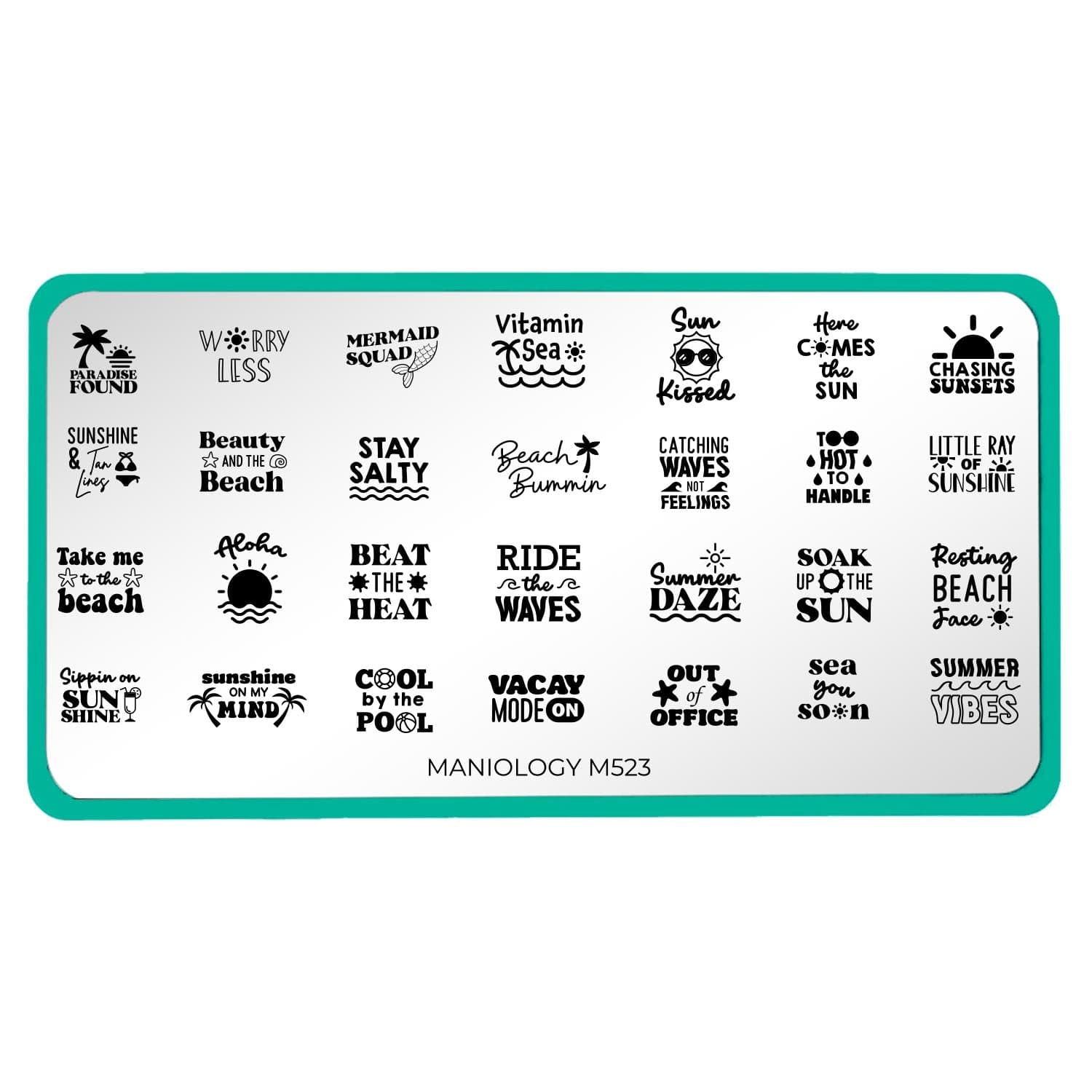 • BEACH BABBLE: Flaunt your beachy vibes with our beach-themed stamping plate, packed with summer nail art phrases and cheeky beachy sayings.