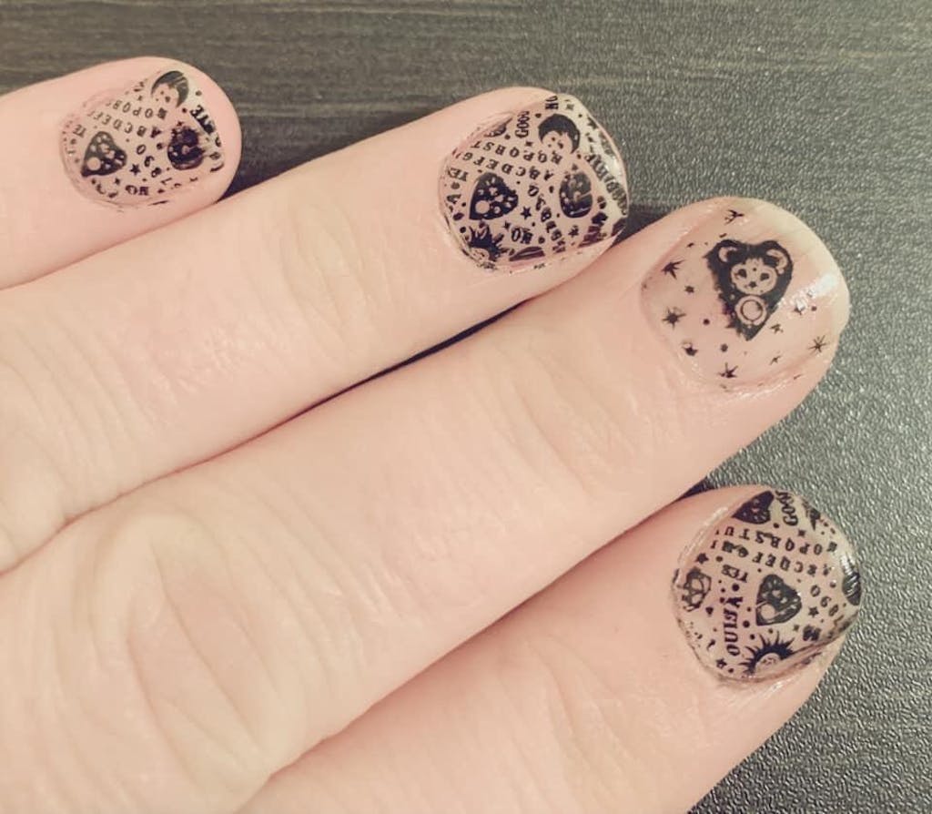 Summon your next manicure with The Spirit Speaks (m071). What secrets will be spelled out before you with this Ouija inspired stamping plate? Stamp a haunting message or create a spooky scene fit for Halloween.