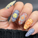 Reflecting Mexico's vibrant soul is our Talavera stamping plate. This Mexican ceramic plate features a stunning array of designs inspired by traditional Mexican ceramic artwork. From floral designs to ornate scrolls and geometric patterns, every detail embodies the beauty of Talavera, allowing you to create vibrant and dynamic Mexican ceramic nail art.