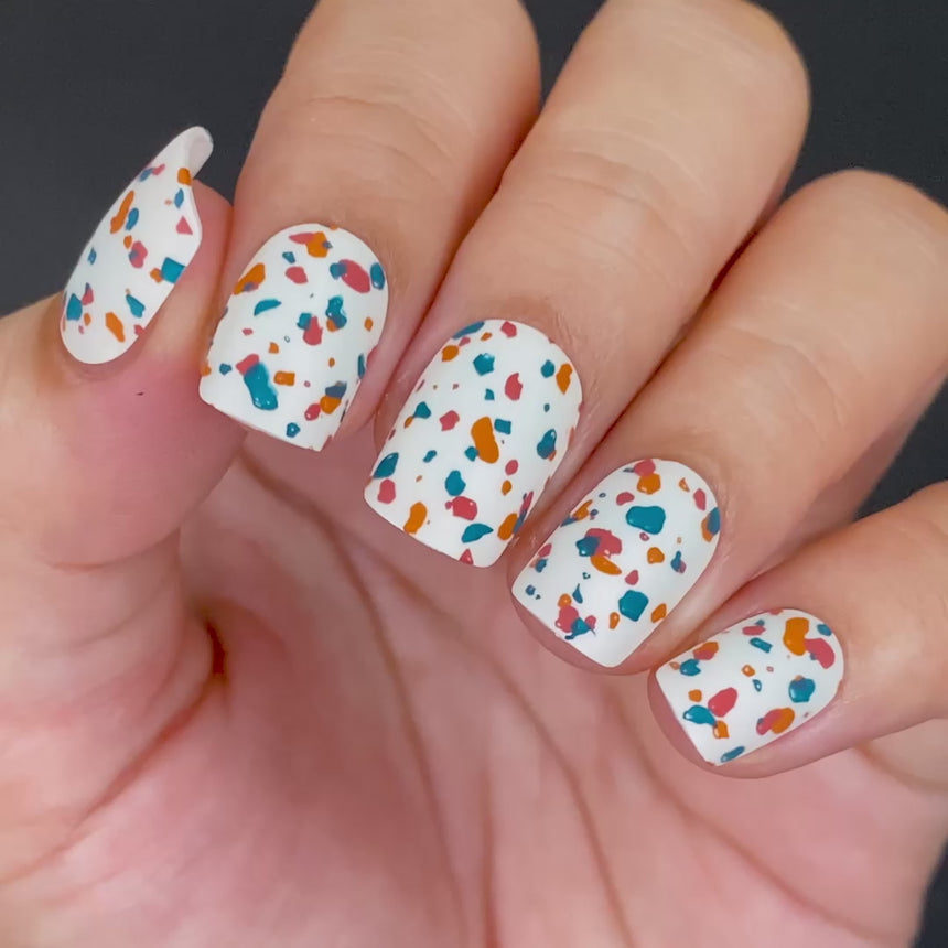 • SPECKLED & STYLISH: Create fun and textured nail art with our terrazzo-inspired designs.