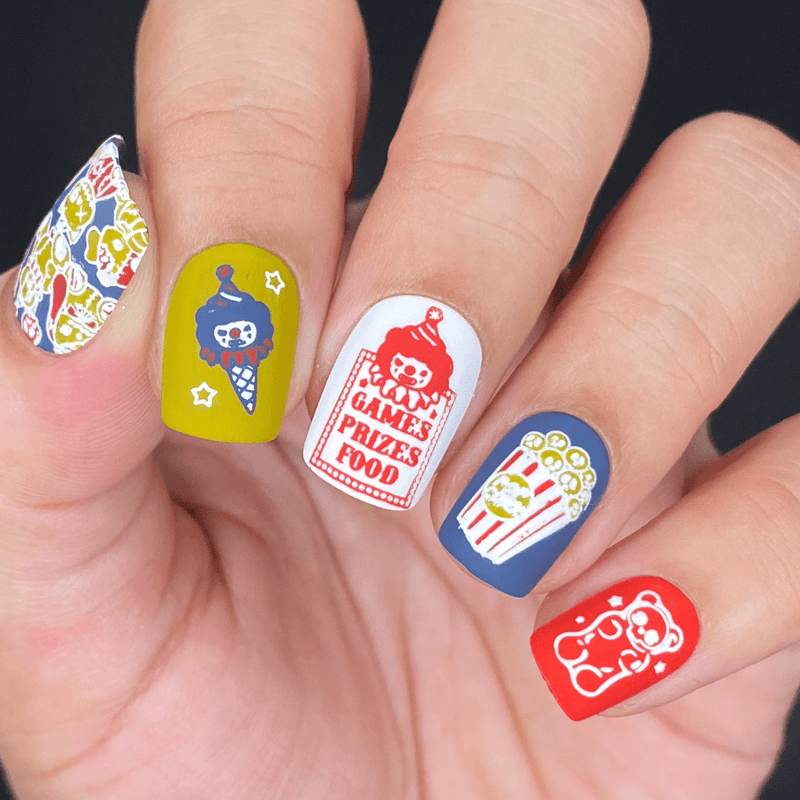 Sweetness meets spookiness in this tantalizing Halloween feast for your nails! Our Treats & Trinkets stamping plate offers the tastiest and eeriest treats and trinkets! Indulge your cravings with a bewitching assortment of candy, sweets, and treats that will leave your nails looking utterly delightful! But beware, amidst the sweets and treats, there's a sprinkle of spine-tingling surprises, lurking around, adding a dash of fright to your nails.