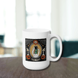 The mug is made up of ceramic; 15oz in size; rounded corners; with a C-handle. *This item is made to order and fulfilled by our printing partner. Ships within USA only.