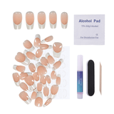 For Nail Glue: Apply an even layer of glue to natural nails and the back of press-on. Place press-on nails with cuticle line and apply. Press and hold for 10-20 seconds to secure.