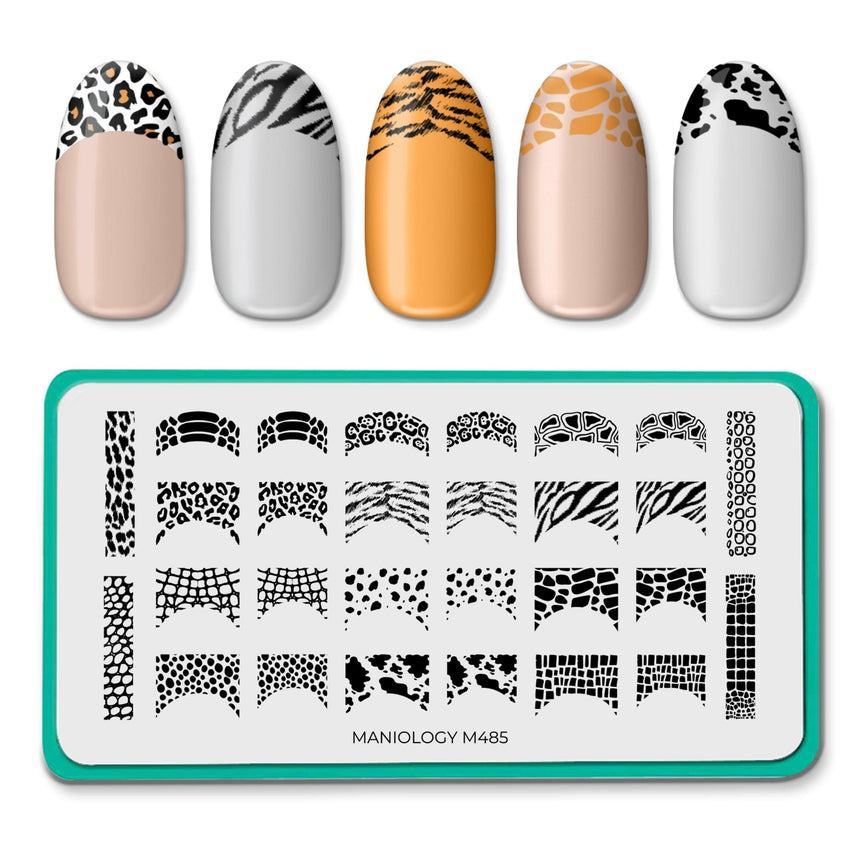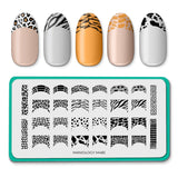Get your claws out for this untamed twist on French tips! Our Wild French stamping plate is filled with an exquisite collection of wild yet chic animal print designs that'll make your nails stand out from the pack. Give your nails a fierce makeover with eye-catching animal print French tips, like fierce leopard spots, striking zebra stripes, bold tiger prints, sassy snake scales, and more.