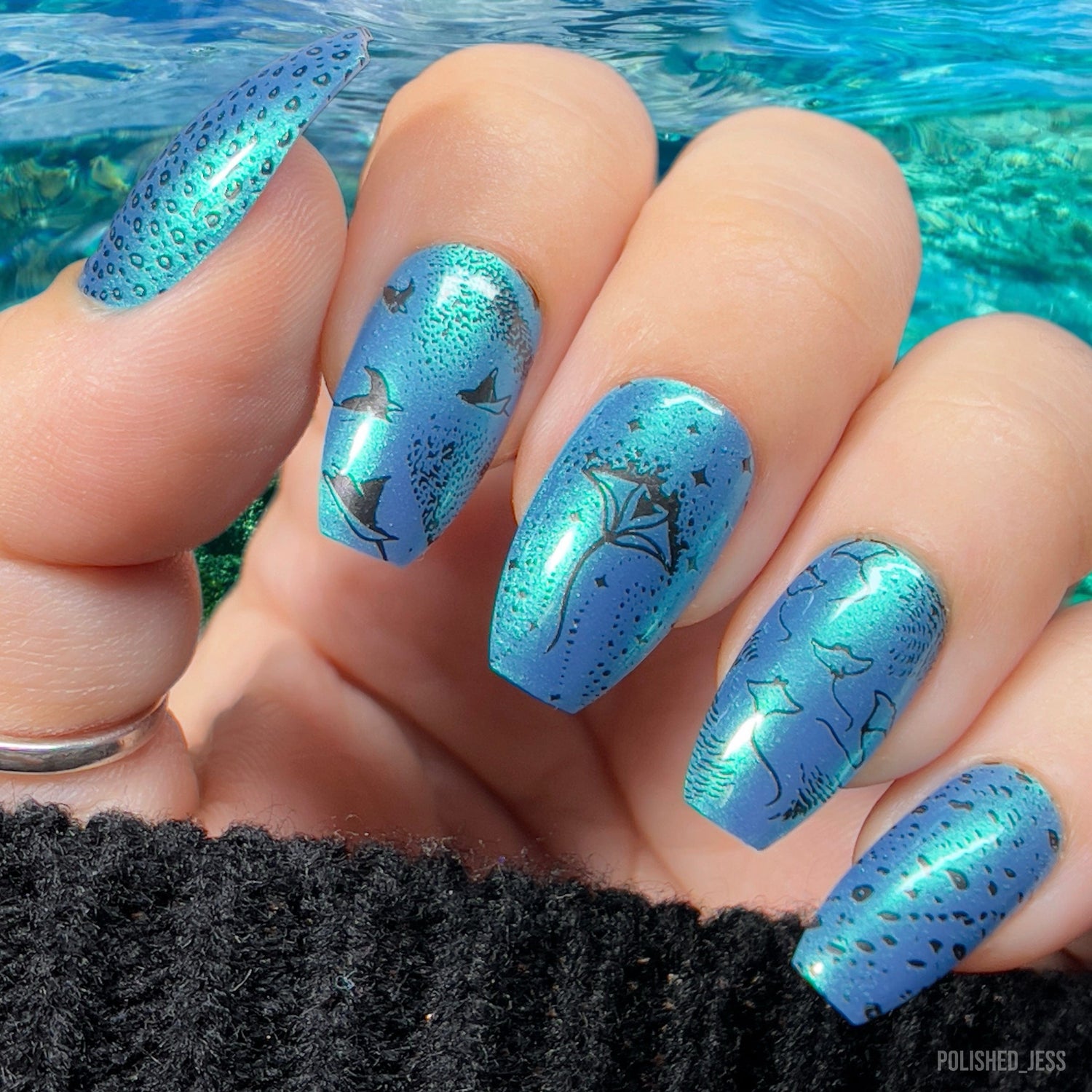 Our stingray stamping plate will take your nail art to new depths! Explore the beauty beneath with an array of stingray designs as enchanting as the sea. From diverse stingray species to intricate skin patterns and the fascinating trails they leave, every design mirrors the beauty of these graceful creatures gliding in the deep blue sea. This plate lets you create stunning stingray nails that shimmer with marine charm, perfect for ocean lovers and those who love to dive deep into creative nail art adventures.