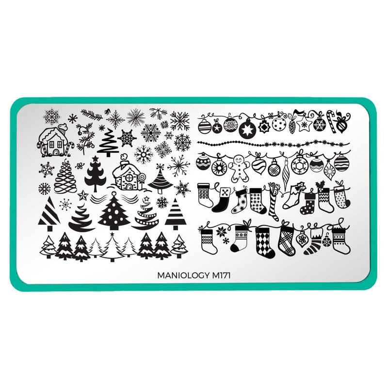 Winter Occasions XL: Snowy Forest/Hung With Care (m171) - Nail Stamping Plate