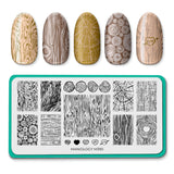 Wander into the heart of the woodland. Whether you're aiming for an earthy, boho vibe or a cozy cabin feel, our Woodland Trimmings (M390) stamping plate has got you covered. This plate is complete with rugged tree barks, natural wood grain patterns, and rustic log cross sections designs - perfect for that outdoorsy look you're going for. With a few simple strokes, you'll have a truly rustic masterpiece.